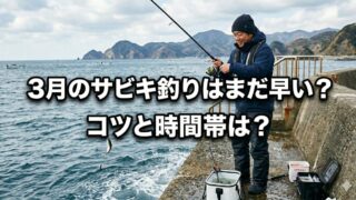 - サビキ:疑似バリが連なる仕掛けで群れの小魚を狙う釣り